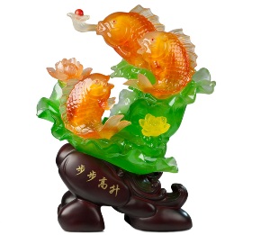 Còn theo thuật phong thủy, cá chép mang lại sự may mắn, sung túc, giàu sang, phú quý. Do vậy, những vật phẩm mang hình cá chép trong nhà sẽ giúp gia chủ chiêu tài khí, tạo may mắn về tài lộc trong kinh doanh. Ngoài ra, cá chép còn được dùng để cầu may cho thí sinh luôn thuận lợi trên con đường học hành, thi cử. Tác dụng Cá chép ngậm đồng tiền hoặc ngậm ngọc: Mang lại vượng khí của sao Bát bạch thuộc Thổ, trong vận 8 là một vật phẩm phong thủy vô cùng may mắn có thể tăng cường cát khí, Dương khí, trấn áp hung khí. Hình vẽ cá phối hợp với nhiều hình họa, hoa văn khác: Có thể hiểu là “hữu dư” có nghĩa là “có”, tức giàu có, dư ăn, dư để. Vì Cá chữ Hán là “ngư” – âm đọc là ” Yu” đồng âm với “dư” 餘 (dư dả). Do vậy, cá biểu trưng cho sự dư dả. Cá Chép phong thủy bằng ngọc hoặc bằng đồng hoặc bằng bột đá: Cầu may mắn thuận lợi cho trẻ bé trên con đường học hành, thi cử. Sen – cá: Biểu ý cho sự “dư dả liên tục” nghĩa là không phải lúc dư lúc thiếu. Vì “sen”, chữ hán đọc là “liên” đồng âm với “liên” (liên tục, liên tiếp, liền nhau), “cá” chữ Hán đọc là “yu” (ngư) đồng âm với “dư” (dư dả). Tranh vẽ 9 con cá: Lợi dụng sự đồng âm giữa 九 ‘cửu’ là chín và 久 ‘cửu’ là lâu dài để cầu chúc dư dả lâu dài.Ngoài ra, cá chép là biểu tượng cho sự kiên trì, bền chí, linh thiêng và cao quý. Cá chép hóa rồng: Trong truyền thuyết câu chuyện cá chép vượt vũ môn hoá rồng nên cá chép còn là biểu tượng của sự tăng tiến công danh và nổi tiếng. Trong làm ăn buôn bán thì cá chép đại diện cho Thuỷ Khí tức là nguồn tài lộc dồi dào. Cá chép là một trong những vật phẩm vô cùng tốt cho cả hai phương diện công danh và tài lộc. Được chuộng làm quà biếu cho người thân và bạn bè trong những dịp hỷ sự. Cách dùng Ở trong nhà: Có thể treo tranh cá chép ở phòng khách, phòng học để hóa giải sát khí, mang tới may mắn tài lộc, sung túc, thúc đẩy công danh. Ở văn phòng: Có thể đặt tượng cá chép bằng ngọc ở trên bàn để mang lại thủy khí, tăng vận may, mang đến bình an, thuận lợi, danh vọng, phát đạt, thăng quan, tiến chức. Kiêng kỵ Bày tượng hoặc tranh cá chép trong phòng bếp, phòng vệ sinh, hoặc phòng ngủ. Link : Cá chép phú quý | |||